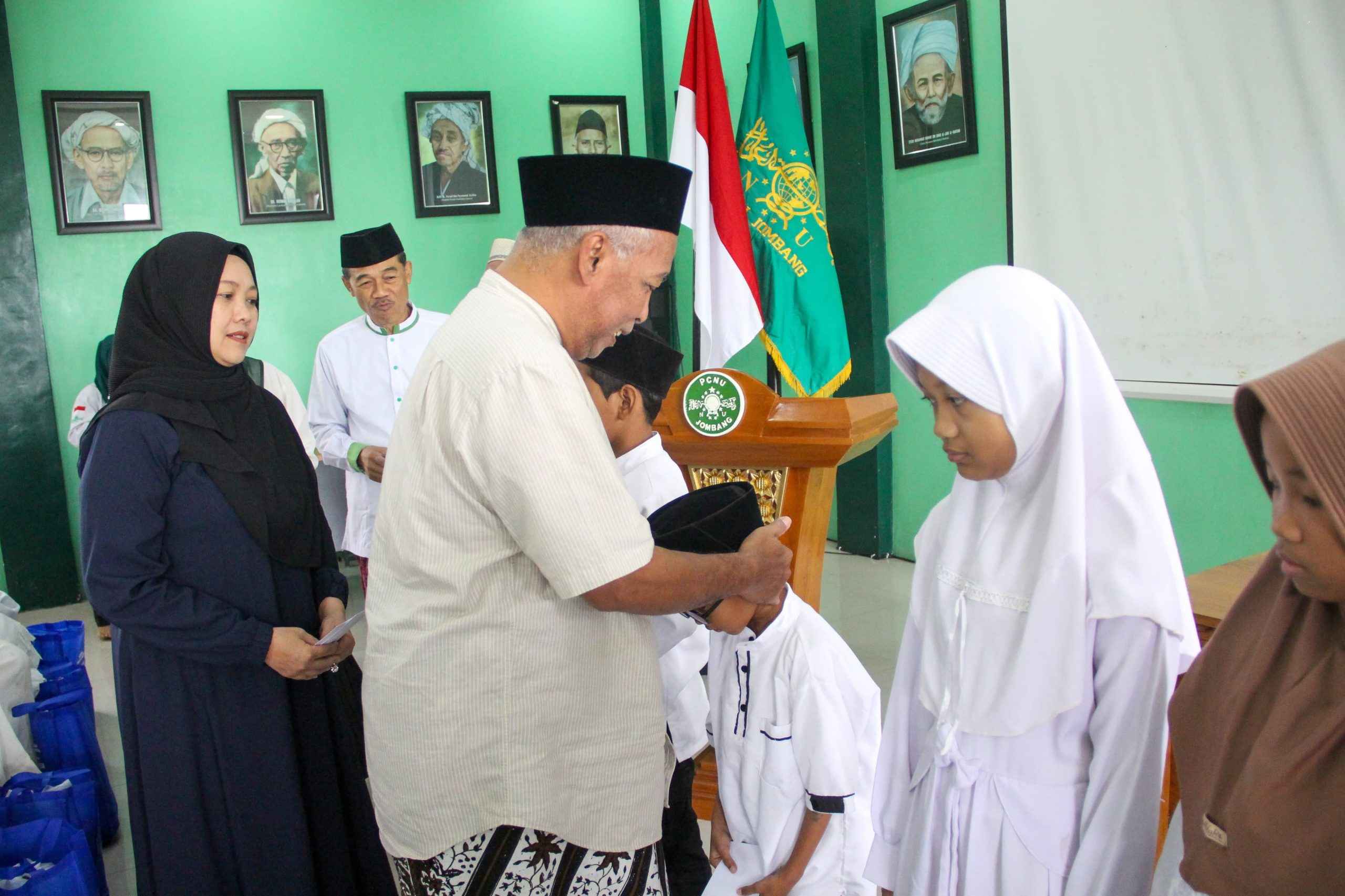 Prosesi penyerahan santunan dilakukan secara simbolis oleh Ketua PCNU Jombang bersama jajaran pengurus serta Ketua LAZISNU PCNU Jombang. Suasana acara semakin hangat dengan lantunan shalawat yang mengiringi jalannya kegiatan.